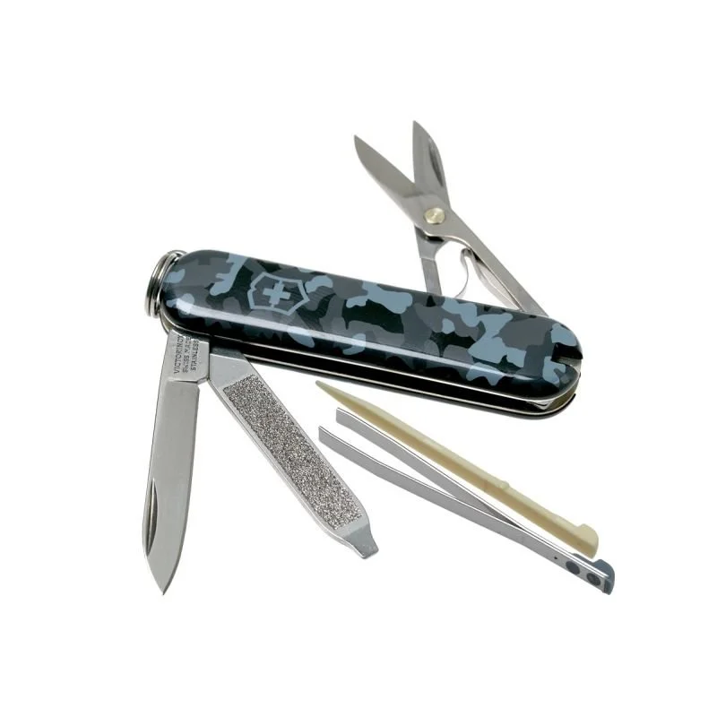 Маленький складаний ніж-брелок CLASSIC SD NAVY CAMOUFLAGE 58мм/2 шари/7функций/синьо-сірий камуфляж/чохол /ножиці 0.6223.942 Швейцарія