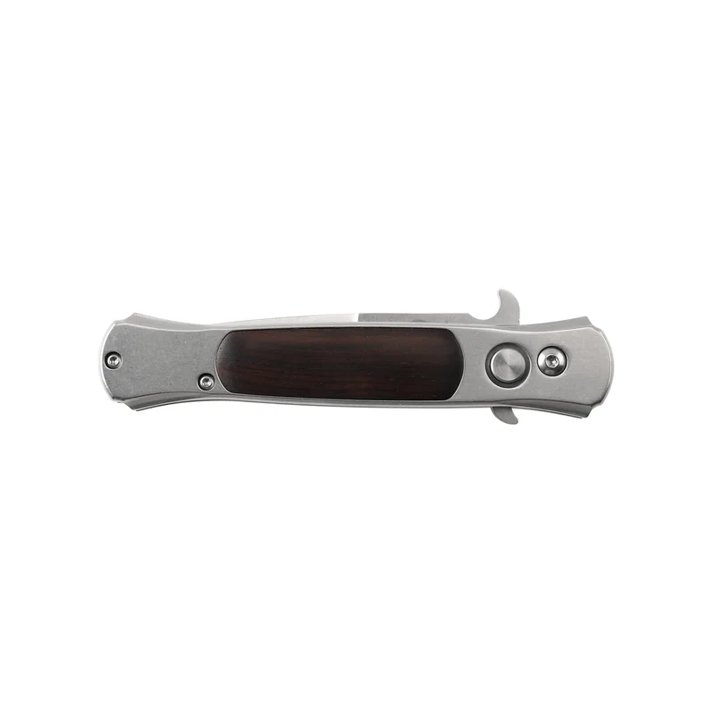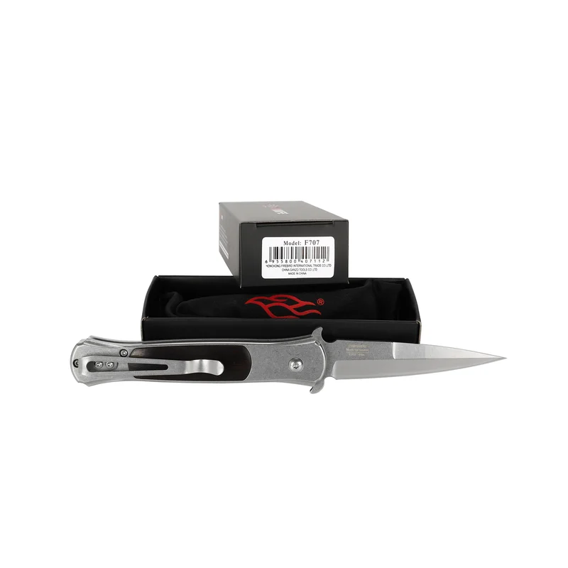 Зручний напівавтоматичний ніж F707 від виробника Firebird, який з першого погляду підкорює елегантністю і непомітним дизайном. Лезо має пряму полуторну заточку, що надає йому досить хижий вигляд. Для леза використовувалася нержавіюча сталь 440С, яка після термічної обробки набуває заявлену виробником твердість 58-60HRC. Сталь 440С широко використовується провідними виробниками ножів, легко заточується і добре тримає ріжучу кромку. Автоматичний механізм відкриття леза спрацьовує після натиснення на кнопку, розташовану в передній частині рукояті. В цілях безпеки кнопка практично не виступає над поверхнею рукояті, а це є гарантією того, що механізм не спрацює від випадкового натискання. Щоб сховати лезо, слід натиснути на кнопку і скласти його в рукоять.