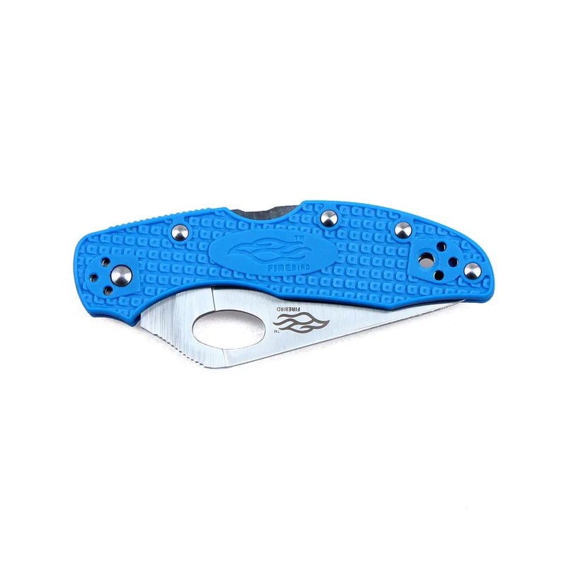 Загальні розміри ножа — 17,5 см, а в складеному вигляді він ще більш компактний, важить 67 грам. Такий ніж точно не здасться важким для того, щоб носити його в кишені. До того ж, він дуже цікаво оформлений і зроблений дуже довговічним. Лезо в даній моделі — нержавіюче. Для нього виробники взяли сталь 440С з показником твердості 58 HRC. Такий метал буде довгий час зберігати відмінний рівень заточування. Враховуючи, що кромка леза Firebird F759M зроблена гладкою, поєднувати її власник ножа зможе і самостійно. Розмір безпосередньо леза становить 75 мм. Помітно розширюється до ручки клинок оброблений на фінішному етапі за методом сатинування, за рахунок чого на його поверхні стають майже непомітними різні відбитки і невеликі подряпини, а значить, довше ніж виглядає зовсім новим. Отвір, який зроблено в лезі служить для відкриття ножа.