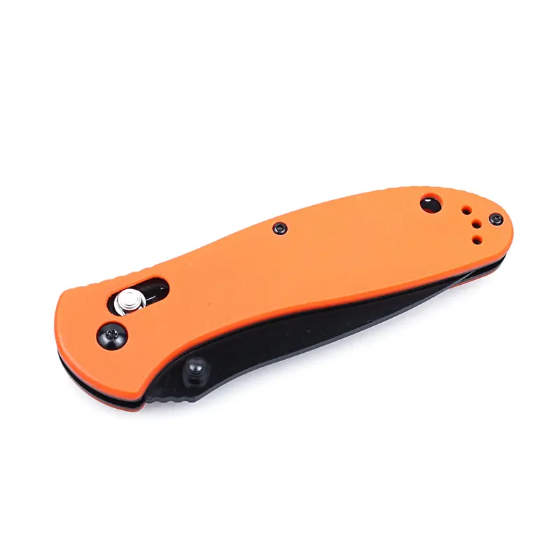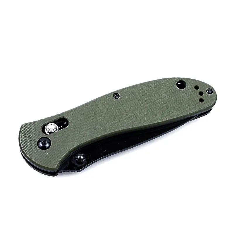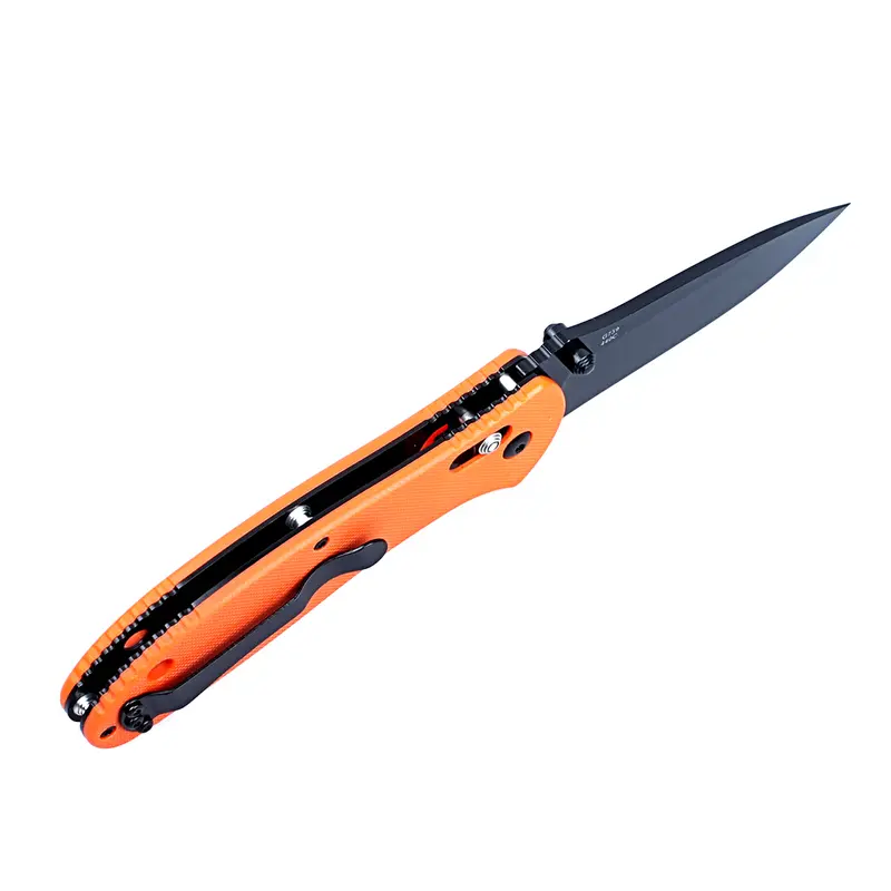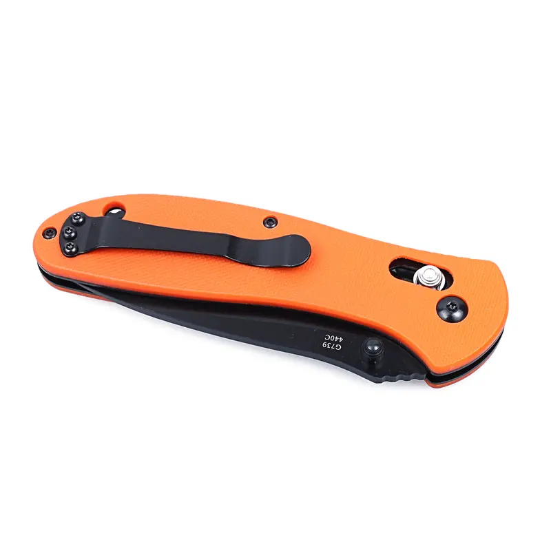 Рукоятка ножа Ganzo G7393 дуже зручна за формою. Щоб ніж не ковзав в рукавичках, її поверхня не гладенька. Рукоять зроблена зі склопластику G10, а тому вона не вбирає воду, добре переносить інтенсивні навантаження і не вигорає на сонці. Невелика вага склопластику також є перевагою для цього похідного ножа. Модель Ganzo G7393 важить всього 135 грам.
