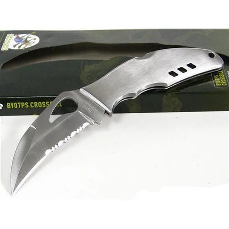 Ніж, з першого погляду нагадує спайдерковскій Harpy. Він також має кігтеподібну форму клинка, завдяки якій об'єкт утримується у вигині ріжучої кромки. Клинок Crossbill зроблений зі сталі 8Cr13MoV, яка містить і молібден, і ванадій, збільшуючи здатність клинка залишатися гострим і перешкоджає зносу протягом довгого часу. В системі замикання використовується виїмка Девіда Бойя, що перешкоджає випадковому закриванню ножа. Рукоятка має дві виїмки для пальців, що робить ніж ще більш зручним в утриманні. Доступна в двох виконаннях-нержавіюча сталь і склотекстоліт G-10.