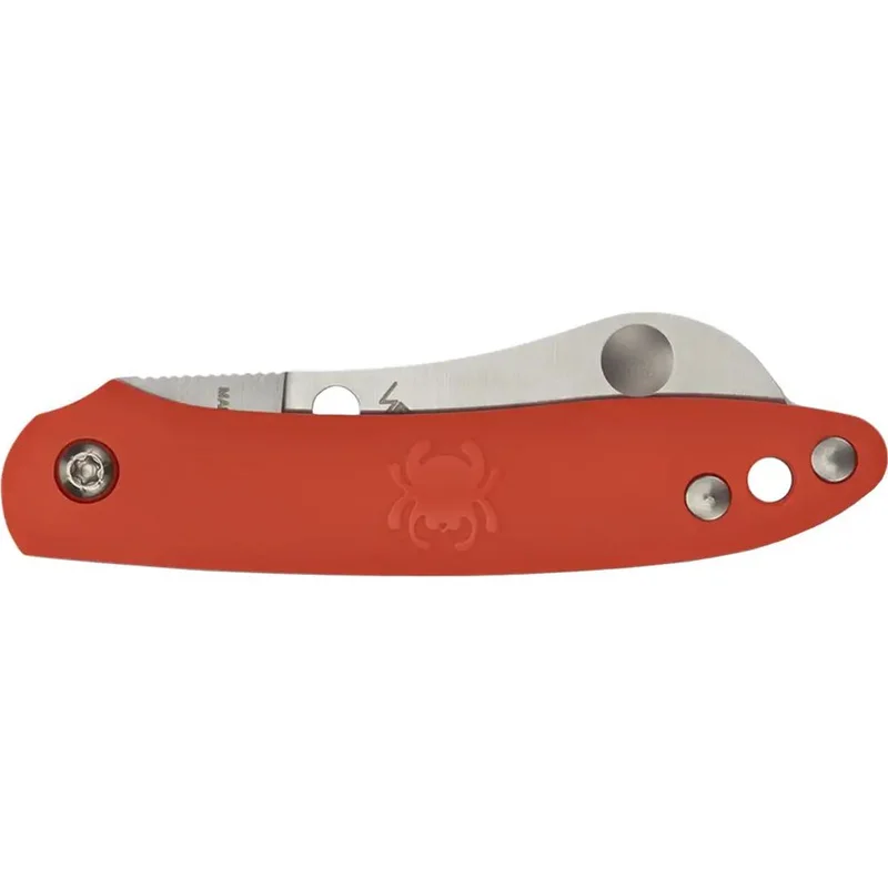 Клинок ножа форми Sheep foot виконаний з висококласної нержавіючої сталі Böhler-Uddeholm N690Co, легованої кобальтом, молібденом і ванадієм, що спільно з прямими спусками від обуха забезпечує ножу прекрасні різальні характеристики. На відміну від традиційних складаних ножів, Spyderco Roadie має рифлення на обуху та чойлі, яке збільшує контроль над ножем під час використання, крім того такий хват забезпечує додатковий захист від непередбачуваного закриття. У робочому положенні клинок фіксується простим, але надійним замком Slip joint.