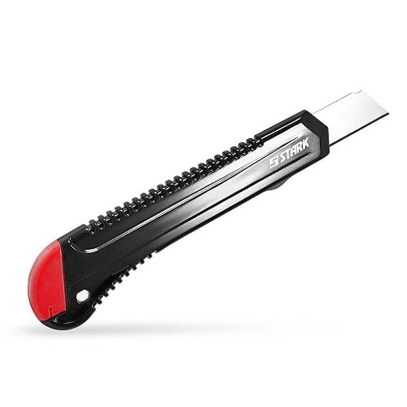 Stark 145 мм - сегментний ніж для виконання будівельних і ремонтних робіт, дозволяє різати різного роду матеріали: гумові, картонні, матерчаті, пластикові та ін. Лезо виготовлено з якісної високовуглецевої сталі легко висувається і автоматично фіксується. Лезо має 16 позицій. Ніж в пластиковому корпусі з ребристою поверхнею, яка запобігає ковзанню в руці. Зручна заміна леза не уповільнює процес різання.