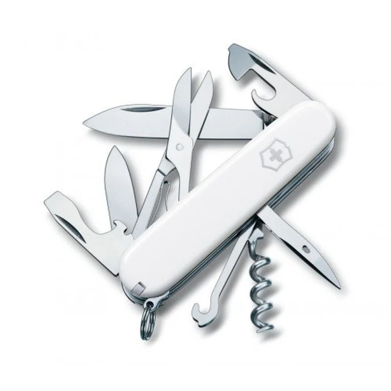 Victorinox Climber (1.3703) – цей армійський ніж поповнив сімейство швейцарських універсальних ножів і популярний, завдяки високій функціональності і чималій кількості потрібних в побуті елементів. Victorinox Climber (1.3703) має два різних за будовою клинка, різні відкривачки для пляшок і консервних банок. Всі елементи виконані з високоякісного матеріалу, що забезпечує надійність і довговічність. Інструмент для зняття ізоляції, розгортка, шило, пінцет і отвертк знайдуть своє застосування в побуті і не загубляться серед інших інструментів, за рахунок стильного і яскравого оформлення Victorinox Climber (1.3703).Такі дрібниці, як кільце для кріплення, зубочистка і ножиці доповнюють модель і збільшують попит на неї.
