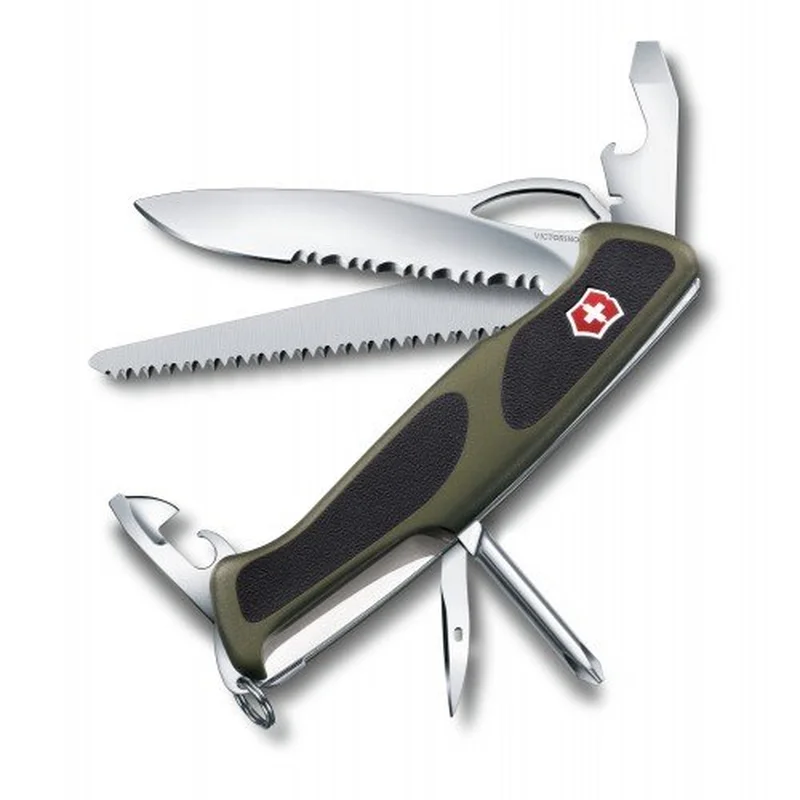Такий практичний і багатофункціональний швейцарський ніж, як Victorinox RangerGrip 178 (0.9663.MWC4), має масу достоїнств, які досить швидко оцінить кожен користувач, адже при своїх невеликих розмірах і легкій вазі він здатний запропонувати цілих 12 предметів, які досить часто затребувані в повсякденному житті. Victorinox RangerGrip 178 (0.9663.MWC4) має привабливий і впізнаваний дизайн, розкладне конструкцію з ергономічною ручкою з матового нейлону зеленого кольору, на якій передбачені протиковзкі вставки чорного кольору і фірмовий впізнаваний логотип компанії виробника. З набору інструментів в Victorinox RangerGrip 178 (0.9663.MWC4) пропонується гостре лезо з серрейторной заточкою, яке блокується і має можливість відкриття однією рукою, відкривачки для консервних банок і пляшок, доповнені викрутками і пристосуванням для зачищення проводів, ефективна пила по дереву, шило, а також хрестова викрутка, плоскогубці, зубочистка і кільце для ключів.