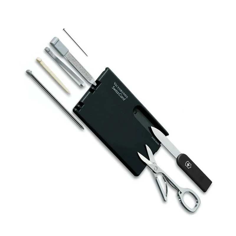 Складаний ніж Victorinox Swisscard 0.7133 – це чудовий подарунок - подарунок для начальника або коханому на день чоловіків. Зовні він виглядає дуже презентабельно і елегантно – напівпрозора чорного кольору пластикова візитка.