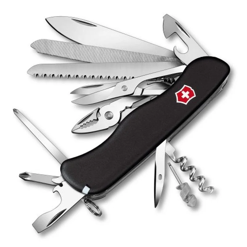 Оптимальне рішення для тих, хто звик поєднувати практичність з надійністю, функціональністю і довговічністю – швейцарський складаний ніж Victorinox WORKCHAMP. Дана модель характеризується компактними розмірами (всього 11,1 см у складеному вигляді), відносно малою вагою (близько 220 м), стильним зовнішнім виглядом і продуманим набором інструментів (серед яких плоскогубці, викрутки, пила, консервний ніж, ножиці і ін). Всього інструментів 21 штука, розташовані вони в 6 рядів.