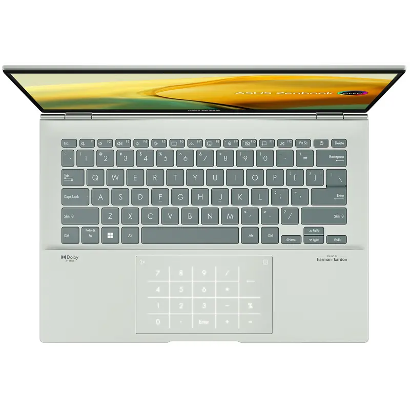 Потужний і компактний ноутбук Zenbook 14 OLED завтовшки всього 16,9 мм і масою всього 1,39 кг отримав захоплюючий новий дизайн – традиційно витончений, проте цілком сучасний. Великий екран NanoEdge формату 2,8K з розширеним динамічним діапазоном (HDR) та співвідношенням сторін 16:10 видає бездоганне зображення з точним відтворенням кольорів, підтвердженим сертифікацією PANTONE. Екран вирізняється високою яскравістю до 550 кд/м2 та кінематографічним колірним охопленням – 100% DCI-P3. Процесор Intel Core 12-ого покоління, графічне ядро Intel Iris Xe, SSD-накопичувач з інтерфейсом PCIe 4.0 SSD гарантують неперевершену роботу, а для тривалої автономної роботи передбачено акумулятор з ємністю 75 Вт·год. Аудіосистема Dolby Atmos з інтелектуальним підсилювачем створює неймовірний звук. Ноутбук сконструйований з думкою про користувача: у ньому передбачено вхід у систему одним дотиком за допомогою зчитувача відбитків пальців на кнопці живлення, нова клавіатура ASUS ErgoSense та ефективна цифрова клавіатура ASUS NumberPad 2.0. Джерелом натхнення для сміливого нового дизайну кришки стала вічна класика – традиційна японська техніка «кінцуґі». Кришка доступна у двох нових свіжих кольорах: задумливий синій (Ponder Blue) та зелений селадон (Aqua Celadon). Zenbook 14 OLED – це новий еталон портативної досконалості.