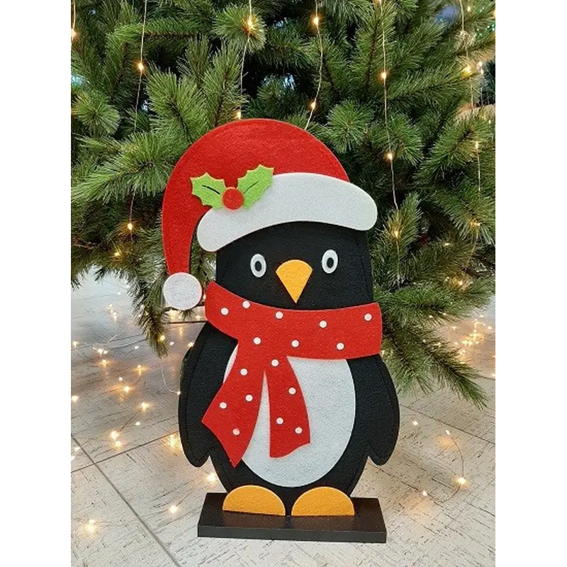 Новорічна фігура з фетру Пінгвін на дерев’яній підставці.