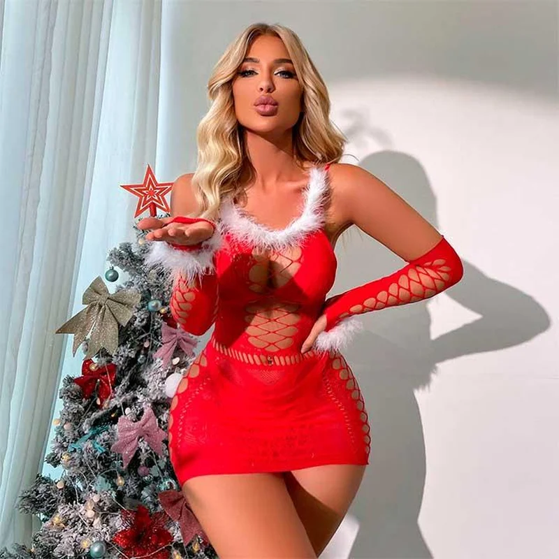 Новорічна міні-сукня з нарукавниками - S/M/L - Червоний – Рольові костюми