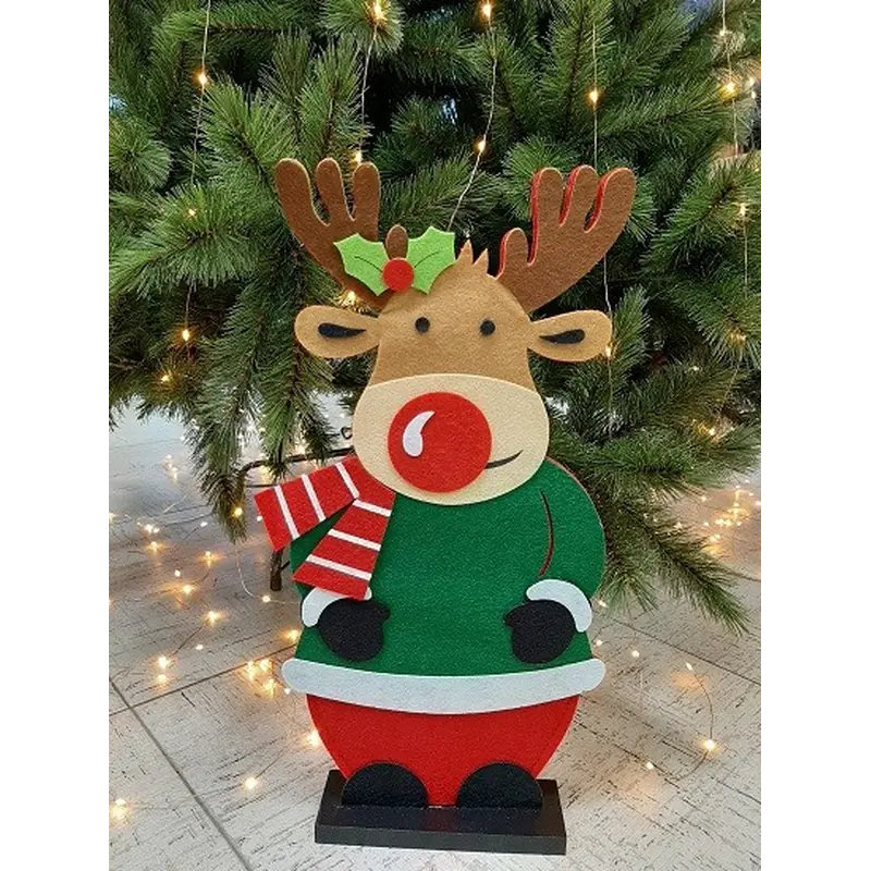 Новорічна фігура з фетру Олень на дерев’яній підставці.