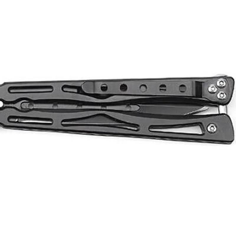 Рукоять цього балісонга з нержавіючої сталі, по всій довжині має фігурні отвори і односторонню кліпсу.
