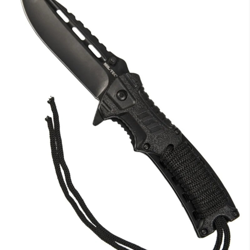 Нож складной с черным шнуром из паракорда и огнивом Mil Tec Германия