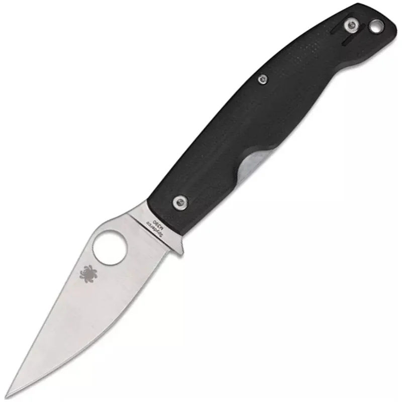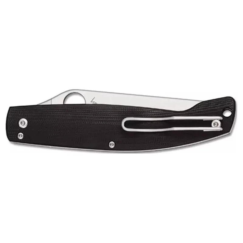 Сатинований клинок витягується за допомогою фірмового отвору біля основи, а фіксація здійснюється сталевим лайнером. Рукоятка ножа складається зі сталевих лайнерів і гладких зовнішніх накладок з чорного композитного матеріалу G-10.
