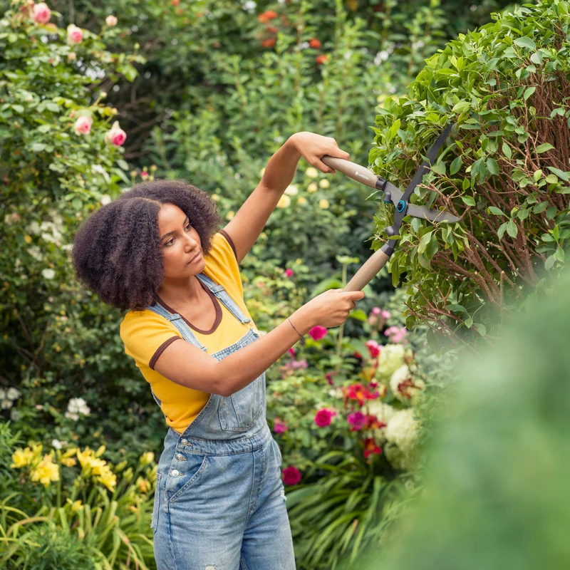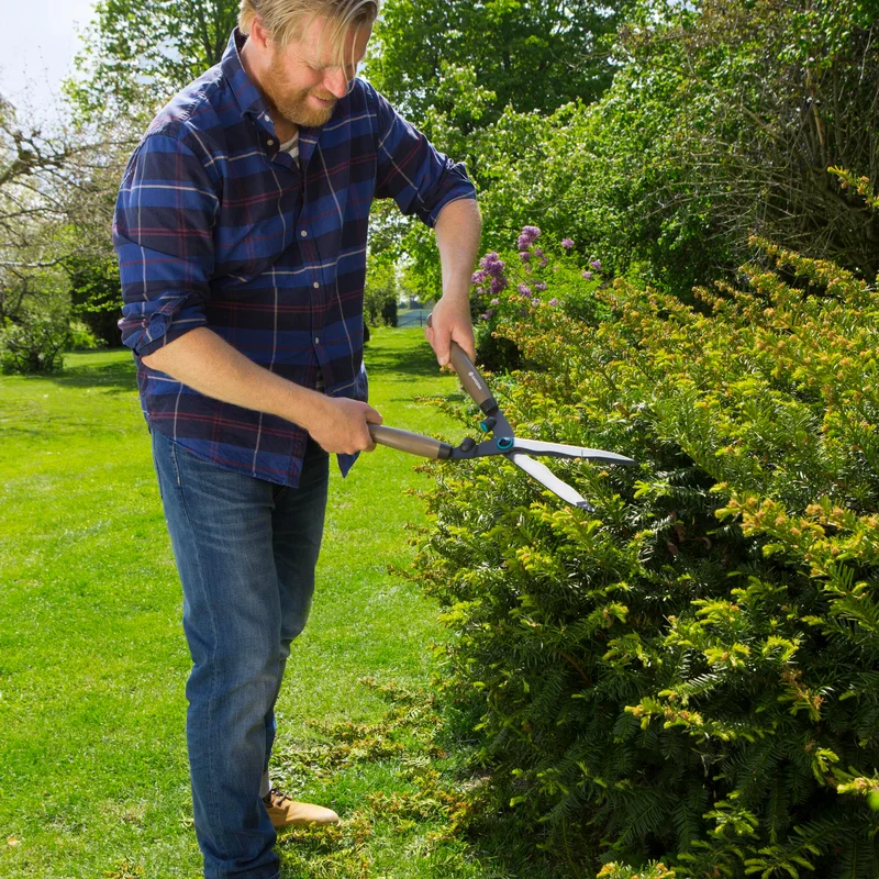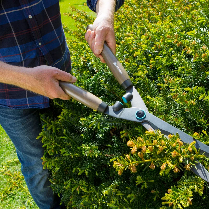 Відмінною рисою Ножиці для живоплоту Gardena NatureCut є універсальність використання та дерев’яні ручки. Універсалізм та функціональність полягають у високій ефективності підрізання як живоплоту, так і у наявності вбудованого сучкорізу, що полегшує обрізання окремих гілок. Гострі хвилеподібні леза довжиною 23 см виготовлені зі високоякісної сталі та мають захист від налипання, що зменшує тертя, забезпечує просте очищення та захищає від корозії, а отже гарантує довгий термін служби. Такі леза забезпечують незмінно високу продуктивність навіть під час роботи з великими площами живоплоту. Ручки виготовлені із сертифікованої FSC деревини та мають сільську чарівність, що відрізняє цю популярну модель від інших ножиць для живоплоту. Ручки розташовані під кутом 20 градусів до лез, тому ваші руки завжди знаходяться на безпечній відстані від живоплоту і не зазнають подряпин та травм. Виготовлені за технологією ErgoTec, дерев’яні ручки мають закруглену симетричну та ергономічну форму, що забезпечує зручне розташування у руці під час обрізки. Упори-амортизатори із спеціального м’якого пластику захистять Ваші суглоби та пальці. Вони дозволять довше працювати в саду, не відчуваючи втоми, незалежно від того, чи стрижете ви огорожу або чагарники. Ножиці для Gardena NatureCut гарантують чисте рівне зрізання, що забезпечить швидке відновлення рослини. Ці ножиці постачаються у пластиковому чохлі-упаковці для захисту лез, який у подальшому можна використовувати для зберігання ножиць.