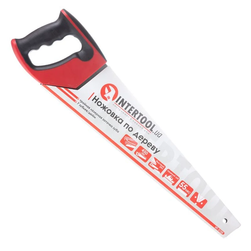 Ножівка по деревині 450 мм, з гартованим зубом, потрійне заточування, 7 зуб/дюйм INTERTOOL HT-3105