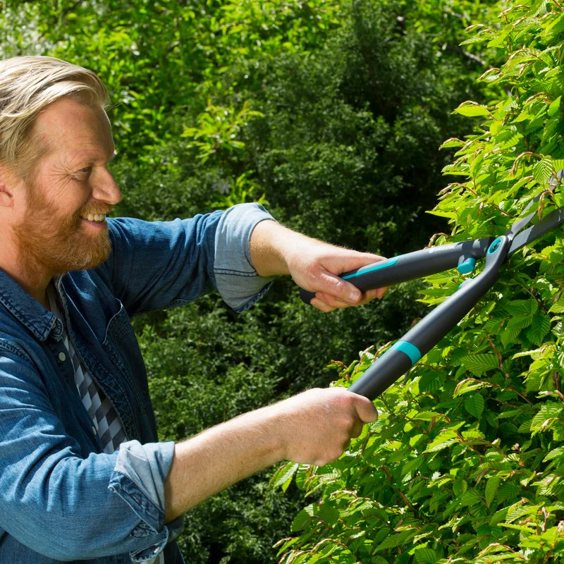 Якщо ви хочете зробити обрізання живоплоту зручним і надзвичайно ефективним, вам напевно стане в пригоді EasyCut від Gardena. Високий стандарт, підтримуваний під час виготовлення цих ножиць, підтверджується 25-річною гарантією. Ви моментально оцініть якість, випробувавши ножиці для живоплоту в роботі. Завдяки технології ErgoTec, що створює збалансовану форму та високу ергономічність, ручки ідеально лягають у руку. Крім того, цей садовий інструмент обладнаний м’яким буфером, що відповідає за високу амортизацію й комфорт. Ви будете здивовані низькою вагою ножиць, який досягається завдяки використанню дуже міцного армованого волокном пластику. Ці пластикові ручки забезпечують надійне захоплення інструменту й ефективність кожного руху. Поєднання перерахованих вище характеристик дасть вам змогу працювати довше, не відчуваючи втоми. Інноваційна хвилеподібна форма лез запобігає вислизанню гілок із різака. Хвилеподібна форма лез забезпечує високу ефективність, зокрема під час роботи з великими площами. EasyCut — універсальний інструмент, який демонструє однакову ефективність як під час обрізання живоплоту та листя чагарнику, так і більших гілок.