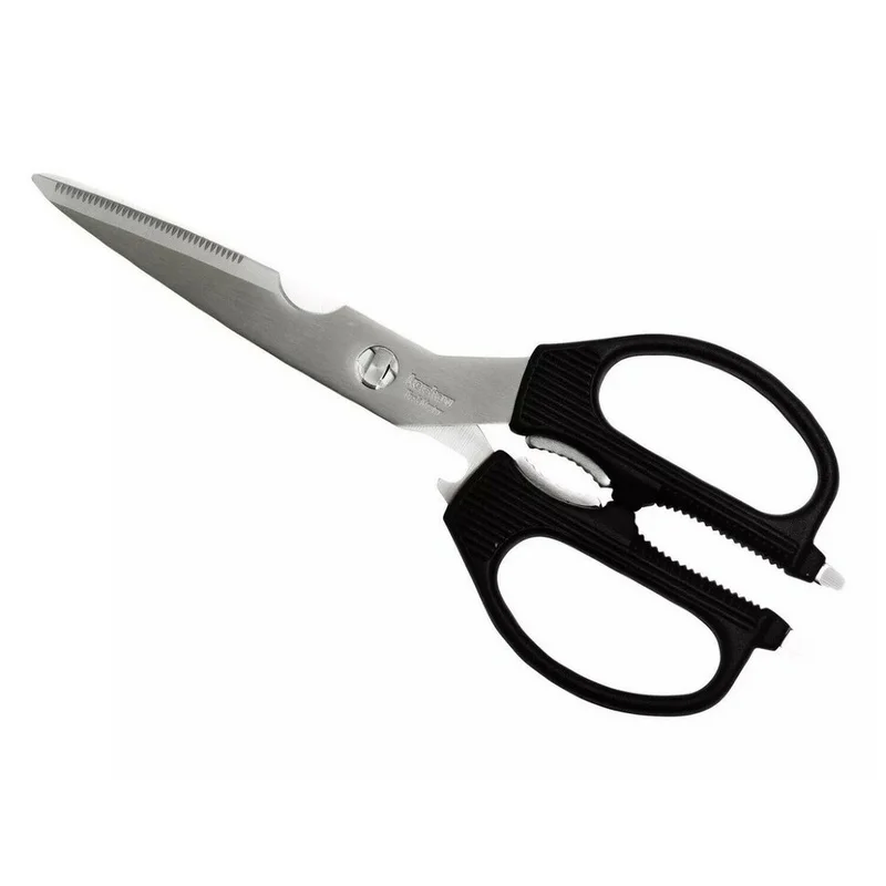 Ножиці Kershaw Taskmaster-універсальний інструмент, який стане незамінним помічником на кухні, в гаражі, або в подорожі. Модель здатна впоратися з широким спектром побутових завдань-від обрізки зелені і розкриття пакетів і конвертів до розрізання мотузок і канатів. Ножиці виготовлені з високоякісної нержавіючої сталі. Одне лезо завбачливо виконано зубчастим для полегшення розрізання жорстких і волокнистих матеріалів. Текстуровані ручки зроблені з армованого скловолокном нейлону, який запобігає ковзанню. Для розширення спектру виконуваних завдань, ножиці Kershaw Taskmaster додатково оснащені горіхоколом, відкривачкою для пляшок, захопленням для кришки, і двома жалами викруток на ручках.