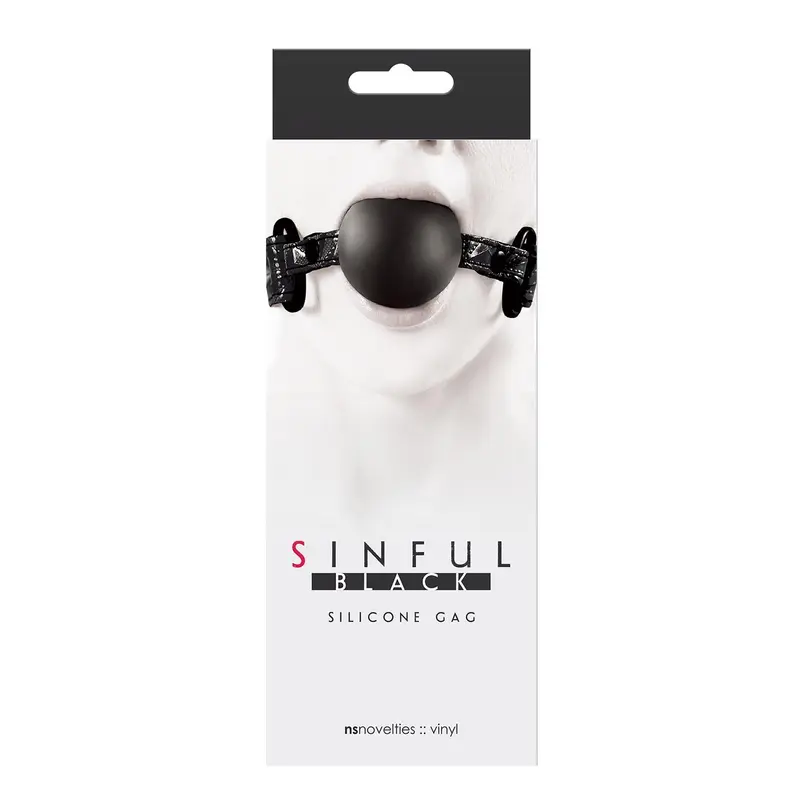 Классический кляп-шарик из коллекции Sinful от Лос-Анджелеской дизайн-студии NS Novelties, черный и страстный как сама ночь - неизменный девайс для БДСМ игр!
