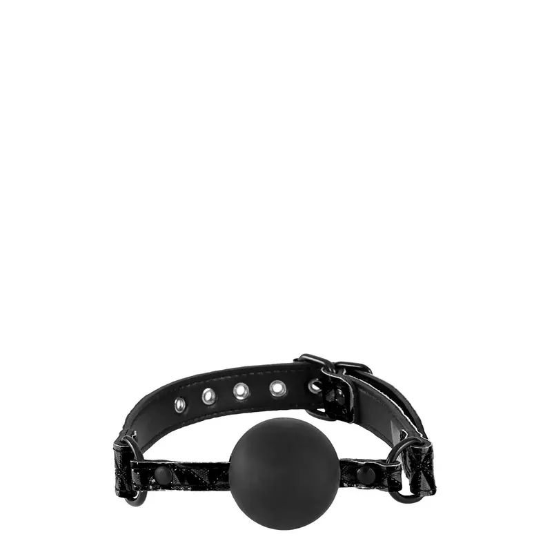 Кляп состоит из небольшого шарика, который вставляется в рот, и регулируемого ремешка. Шарик не портит зубную эмаль. Он изготовлен из абсолютно безвредного для организма силикона. Виниловый ремешок декорирован тиснением, создающим богатую игру оттенков, бликов и эффект трехмерного цвета. Ремешок удобно регулируется практически на любой размер головы. Для получения максимального комфорта во время использования внутренняя поверхность ремешка покрыта слоем мягкого неопрена. Кляп дополнен небольшими полукольцами для надёжности крепления.