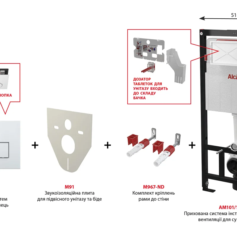 Інсталяція AlcaPlast 4в1 AM101/1120 з білою прямокутною кнопкою M570 + підвісний унітаз Kvadro