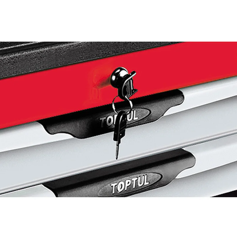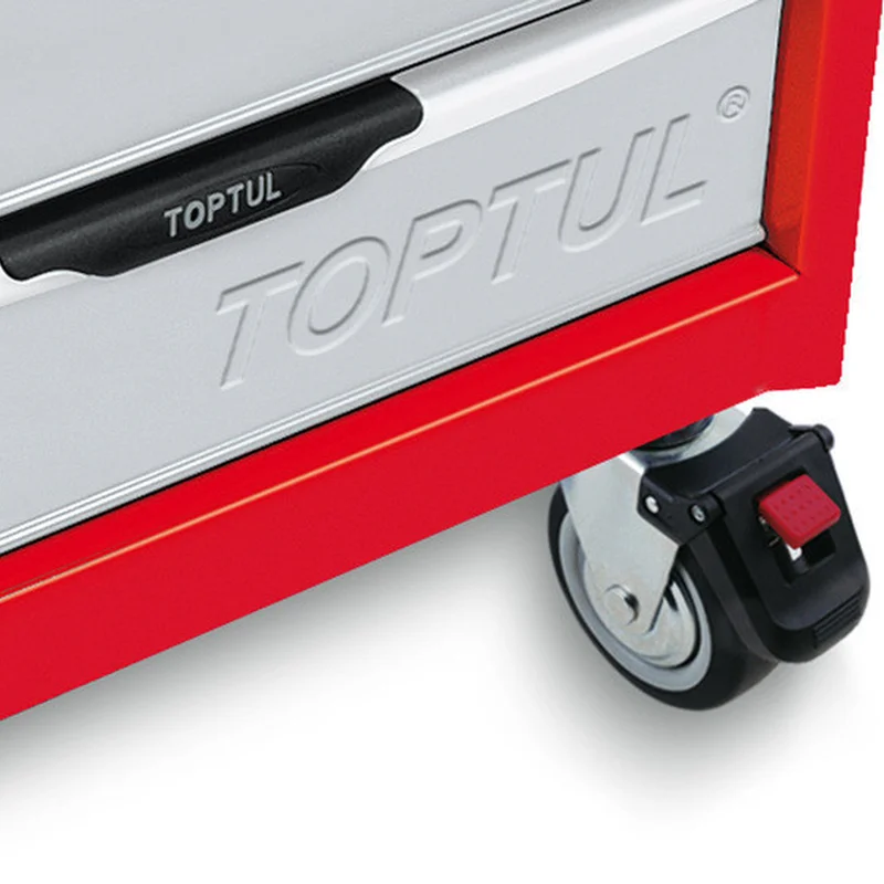 Тележка для инструмента серии Pro-Line 7 секций (красная) TOPTUL TCAC0702 Особенности: Тележка выполнена из качественного металла Покрытие устойчиво к царапинам и химическим растворам Верхний рабочий стол из высококачественного ABS-пластика Тележка рассчитана на статическую нагрузку в 680 кг Каждый ящик рассчитан на загрузку в 45 кг. Имеются 4 колесика 5"х2", два из которых - поворотные с фиксатором Ящики тележки полностью выдвигаются, имеют плавный ход и функцию авто-возврата Имеется общий замок на все ящики Одновременно может быть открыт только один ящик, что предотвращает опрокидывание всей тележки Кол-во ящиков: 7 Габаритные размеры тележки (без колес): 687x459x857 мм Габаритные размеры тележки (с колесами): 687x459x1015 мм Размеры средних ящиков (5 шт.): 578x378x75 мм Розміри великих ящиків (2 шт): 578x378x155 мм