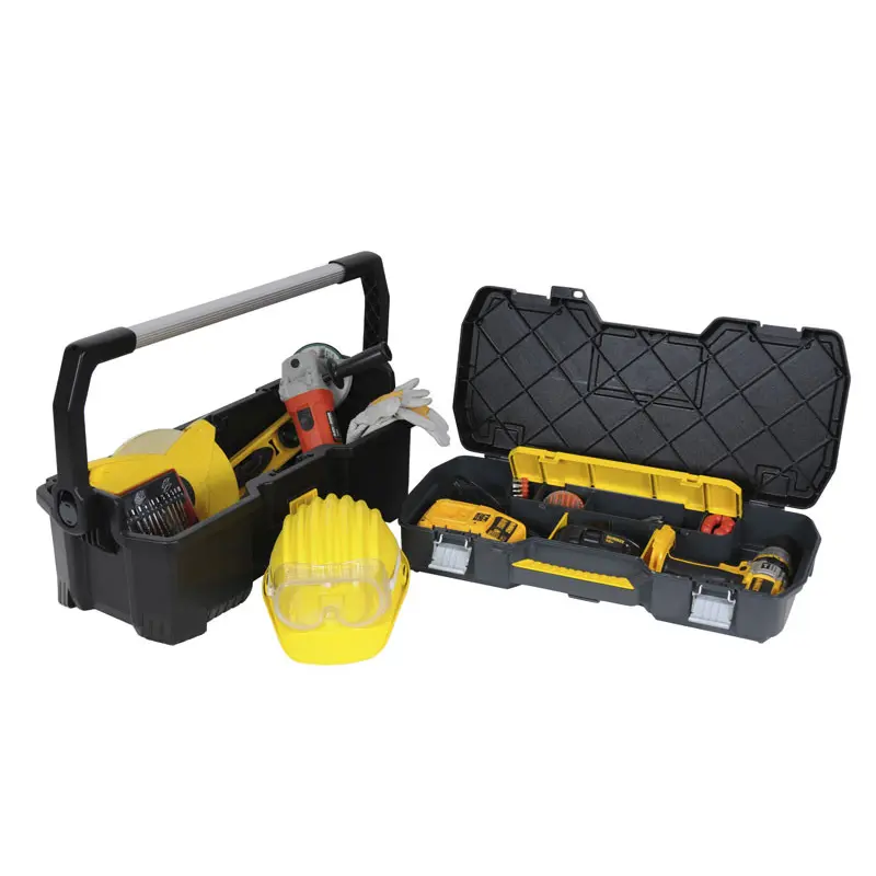 Інструментальний Ящик 67х32х28см зі знімним кейсом, обсяг 59 л, навантаження 18 кг STANLEY 1-97-506 Відкритий професійний пластмасовий ящик для інструменту зі знімним кейсом "Stanley" 24".Відкритий ящик зі знімним кейсом для електроінструменту і дрібних деталейКнопка на передней поверхности для простого отсоединения кейса от ящика.Для их соединения необходимо поместить кейс задней частью на ящик и зафиксировать со щелчком, нажав сверху на переднюю частьДлинная металлическая ручка ящика, фиксируемая в вертикальном положении для переноски, и опускаемая вниз для удобства храненияПрочные нержавеющие металлические замки и металлические петли у верхнего кейсаИнтегрированная ручка позволяет использовать кейс отдельно от ящикаКейс имеет съемные перегородки и закрываемое отделение для сверл и мелких деталей.Позволяет размещать электроинструмент и аксессуарыКорисний об'єм 59 л, максимальна навантаження 18 кгВисокоміцна конструкція з структулена