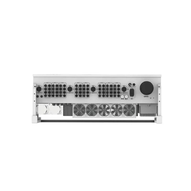 Завдяки інтелектуальній платформі моніторингу, інвертори Deye повної серії підтримують дистанційне вимкнення в разі виникнення аварії. Віддалене оновлення параметрів налаштування і програмного забезпечення полегшує експлуатацію та обслуговування фотоелектричної станції. 8 MPP трекерів, макс. еф. до 98.8%. Застосування нульового експорту, застосування VSG. Інтелектуальний моніторинг рядків (опціонально). Широкий діапазон вихідної напруги. Функція Anti-PID (опція). Тип II DC/AC SPD. Функція AFCI (опція).