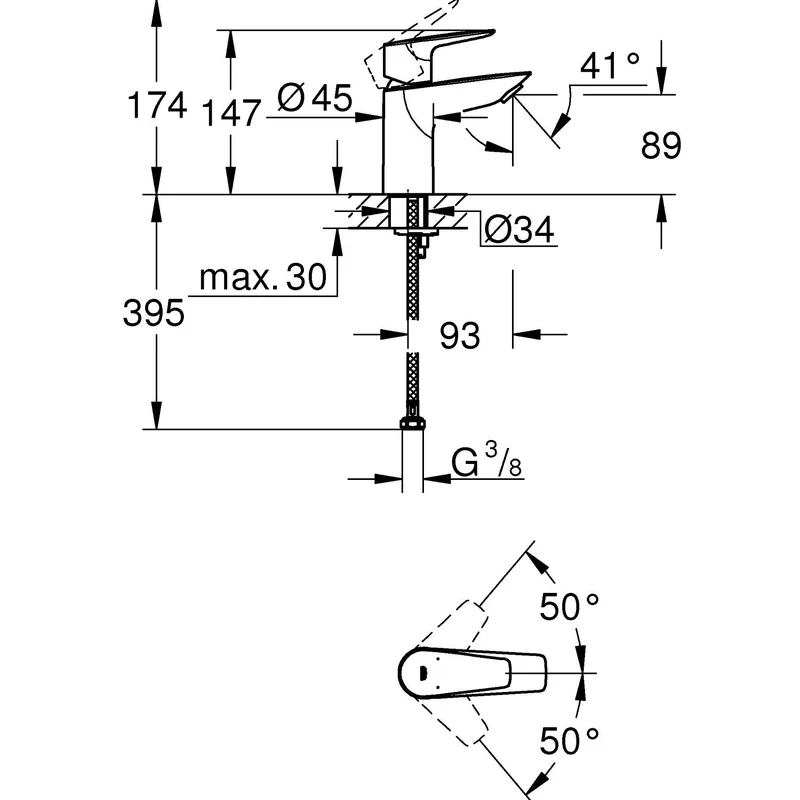 Однорычажный смеситель для раковины без донного клапана S-Size Grohe BauEdge New (23330001)