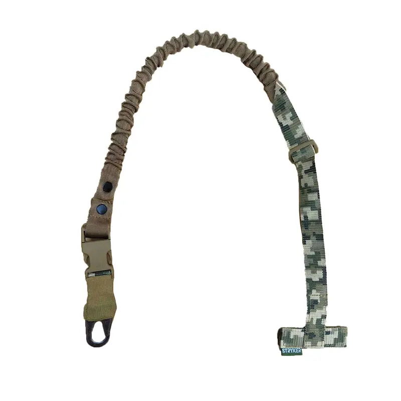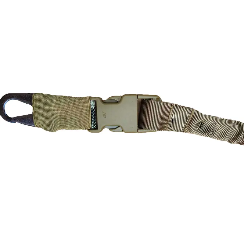 Карабин изготовлен из прочной стали US Mil. Спец. ИК-материалы. Это полностью регулируемая одноточечная стропа для банджи, которая крепится через Т-образный стержень к любому MOLLE-совместимому жилету, нагруднику или броне. Позволяет работать обеими руками, предотвращая натирание шеи, которое иногда наблюдаются при использовании других строп. Прикреплен к крючку в стиле H&K, для быстрого отсоединения от оружия.