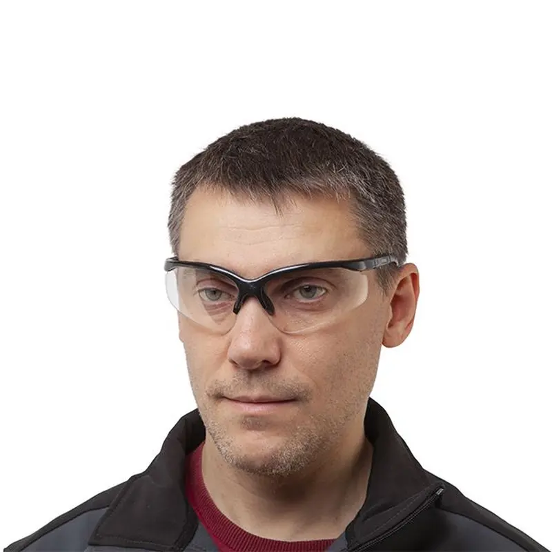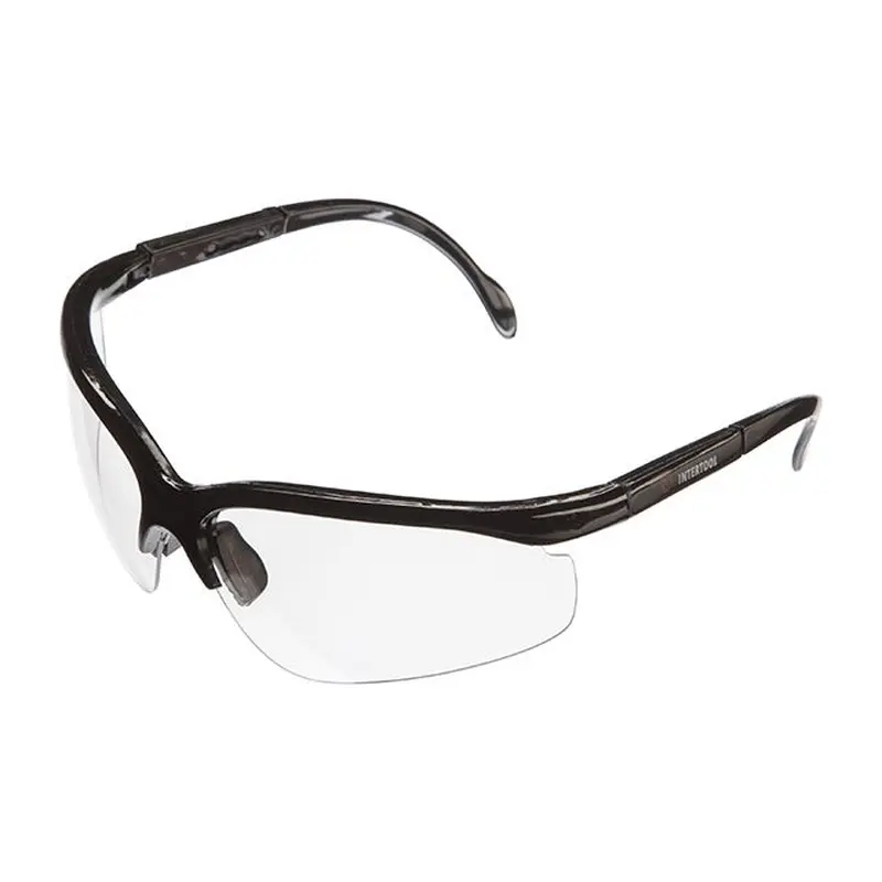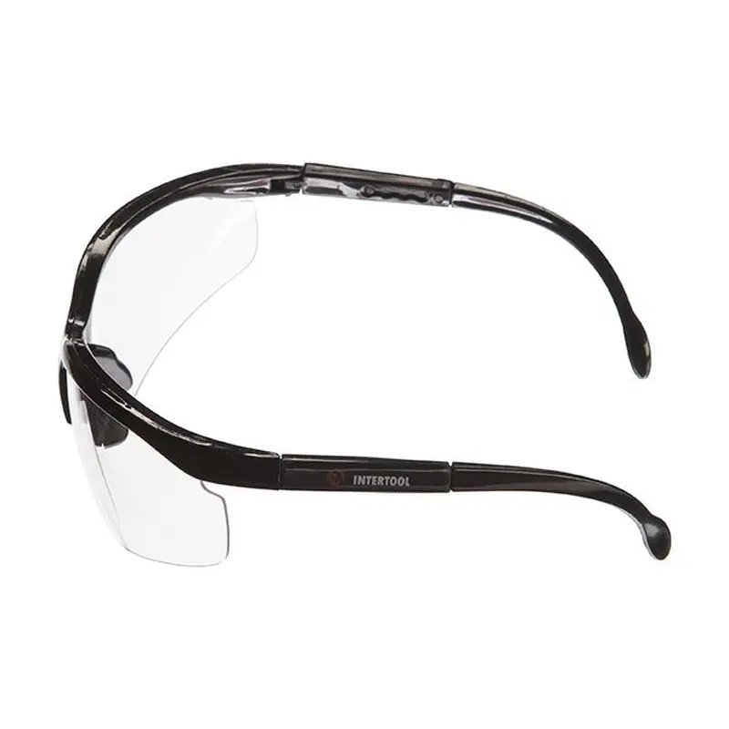 Окуляри захисні прозорі, матеріал лінз - полікарбонат, матеріал завушників - полікарбонат чорного кольору, захист від удару, оптичний клас 3 INTERTOOL SP-0089
