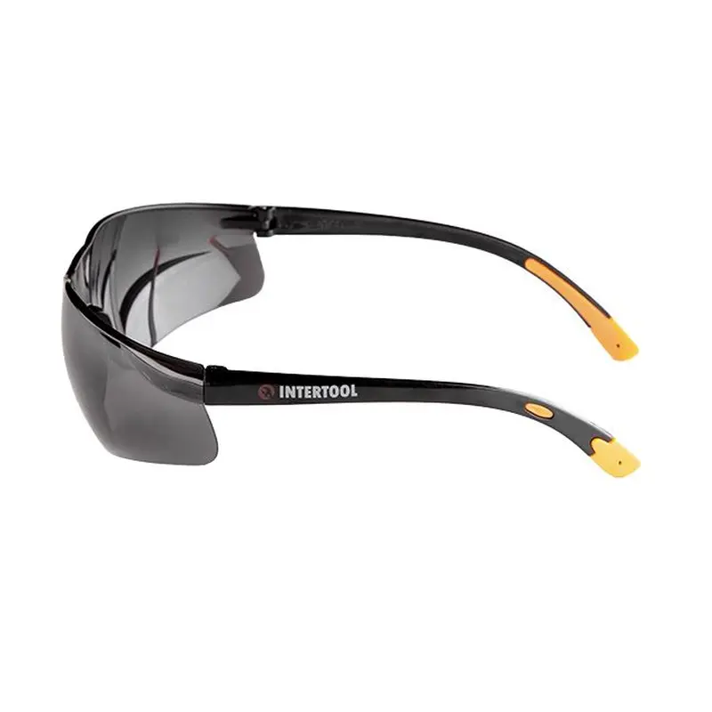 Окуляри захисні затемнені, матеріал лінз полікарбонат, матеріал заушников полкарбонат, захист від удару INTERTOOL SP-0088