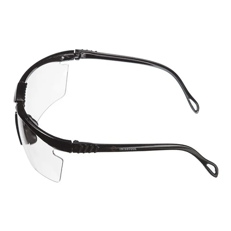 Окуляри захисні прозорі, матеріал лінз - полікарбонат, матеріал завушників - полікарбонат чорного кольору, захист від удару, оптичний клас 3 INTERTOOL SP-0090