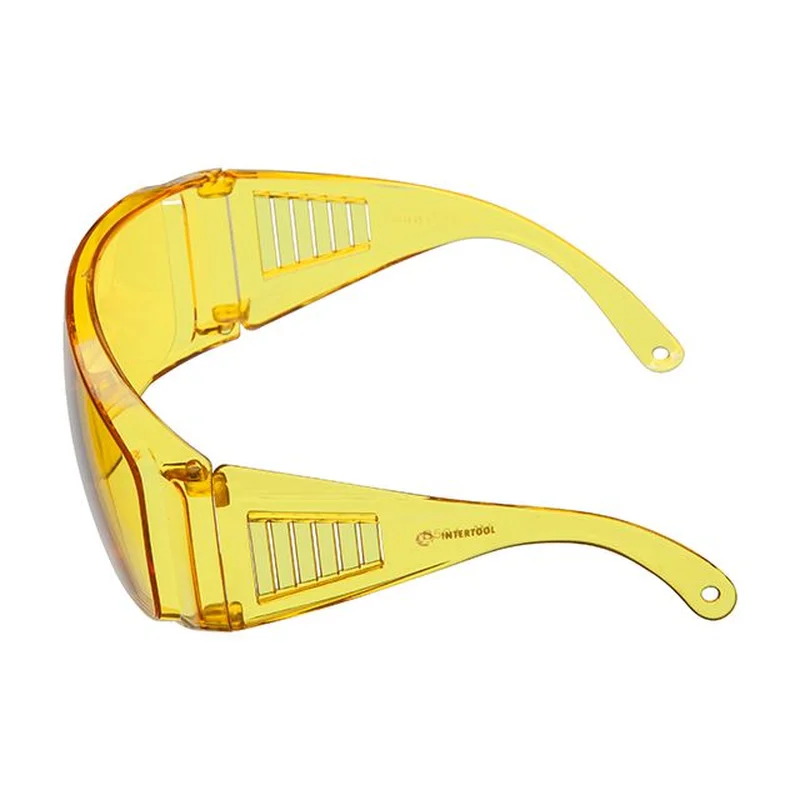 Окуляри захисні жовті, матеріал лінз - полікарбонат, матеріал дужок - полікарбонат, захист від удару, оптичний клас 1 INTERTOOL SP-0082