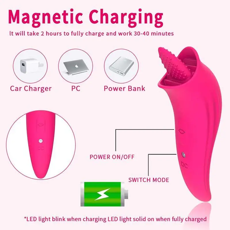Полюбляєте оральні ласки? Тоді кліторальний стимулятор - саме те, що вам потрібно!Стимулятор виведе задоволення на новий рівень!Тільки подивіться на дизайн і конструкцію кліторального стимулятора: компактний розмір, інтуїтивно-зрозуміле управління, потужний моторчик і, звичайно, сама робоча частина у вигляді маленького язичка.Язички стимулятора воістину творять чудеса. Прикладіть іграшку до клітора і насолоджуйтеся неймовірною стимуляцією!Іграшка має 5 різних режимів вібрації, які з легкістю перемикаються за допомогою кнопочки на іграшці. Спробуйте їх усі і виберіть той самий!Ститмулятор виготовлений з медичного силікону 〈гіпоалергенного матеріалу〉 і має приємну на дотик, оксамитову поверхню.З вібратором, що перезаряджається, ви можете просто зарядити вібратор клітора за допомогою доданого usb-кабелю з магнітною зарядкою.