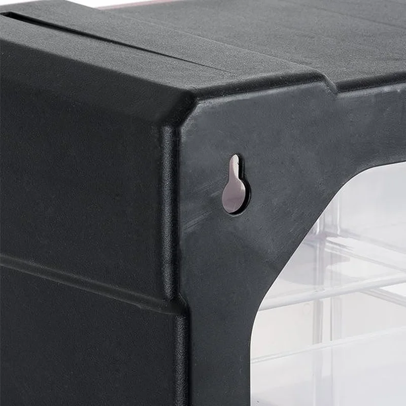 Прозорі стінки дозволяють побачити що зберігається в лотках - це спрощують процес пошуку. Зручні ручки допомагають висувати лотки, а обмежувачі на верхніх стінках комірок не дозволяють випадати.