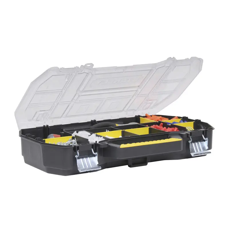 Органайзер для інструменту професійний (кассетница 61 x 9,5 x 33см) кришка з полікарбонату STANLEY STST1-79203 Організатор 19" / 24" з металевими замками.Містить знімні перегородки; унікальне Р-образне відділення для розміщення молотків та іншого інструменту зігнутої формиВисокоміцні замки із захистом від корозії для тривалого терміну службиМіцна кришка з полікарбонату для найкращого захисту вмістуІнтегрована ручка для перенесенняSTST1-79203: може використовуватися з ящиками 24" 1-97-514/ 506