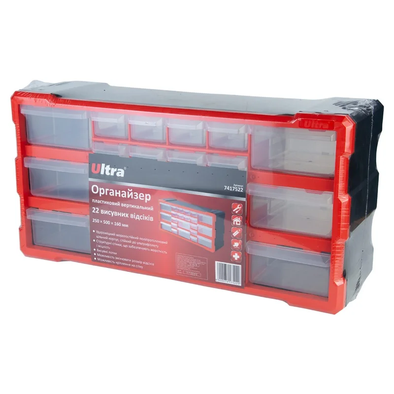 Органайзер пластиковий вертикальний 22 висувних відсіку 250×500×160мм ULTRA (7417522)