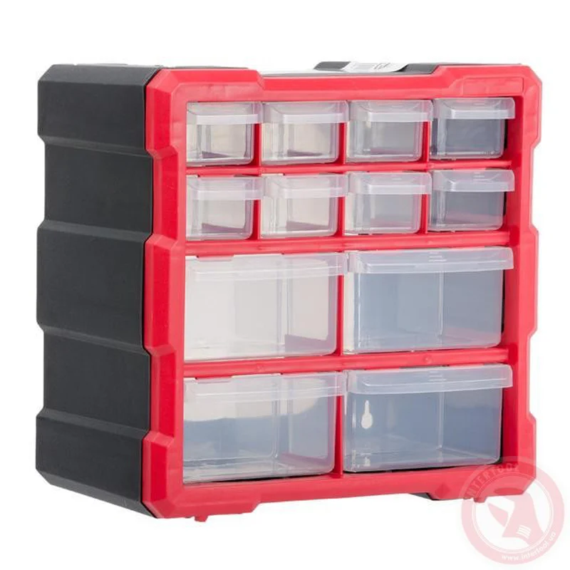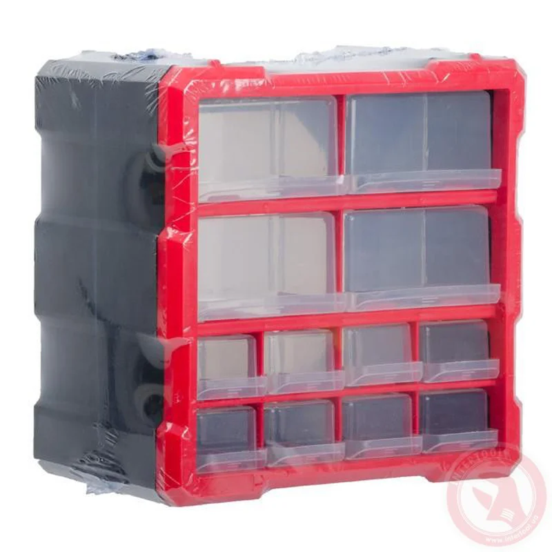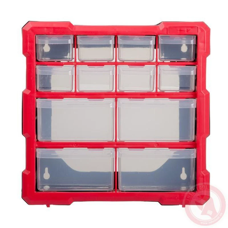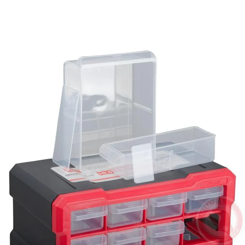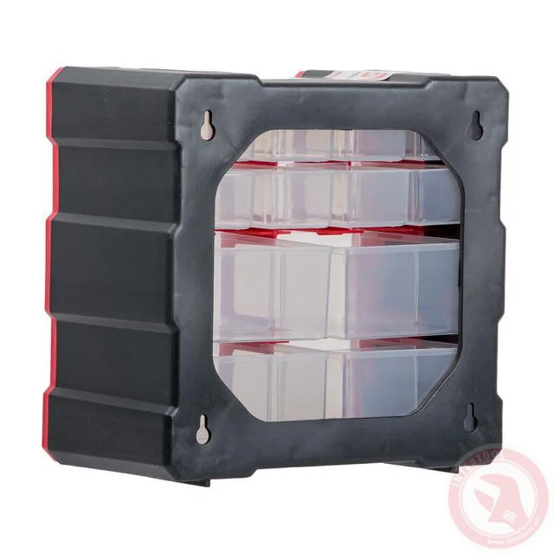 Місткий вертикальний органайзер з безліччю різних відділень допоможе навести лад на робочому місці, вдома або в гаражі. Особливості Компактний та місткий Міцний цілісний корпус Знімні перегородки всередині кожного відділення Можна кріпити на стіну Добре продумана конструкція спрощує зберігання та пошук невеликих речей, наприклад: дрібної фурнітури, метизів, біжутерії, бісеру тощо Органайзер виготовлено з міцного пластику та містить в собі 12 відділень: 4 великих (140 х 110 х 60 мм), 8 маленьких (140 х 50 х 35 мм). Зручні ручки допомагають діставати лотки, а обмежувачі на верхніх стінках комірок не дозволяють їм випадати. Усередині кожного лотка розміщується знімна перегородка, що збільшує кількість камер зберігання до 24 шт. Прозорі стінки спрощують процес пошуку. Органайзер призначений для стаціонарного використання, місткий та не займає багато місця. Завдяки отворам, розташованим на задній стінці, легко кріпиться на стіну. Організуйте ідеальний порядок з цим зручним органайзером. Ящики для інструментів, органайзери, системи зберігання №1 в Україні. За результатами незалежного рейтингового дослідження у рамках проекту Українська Народна Премія 2021 року.