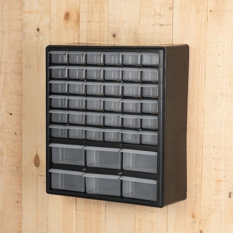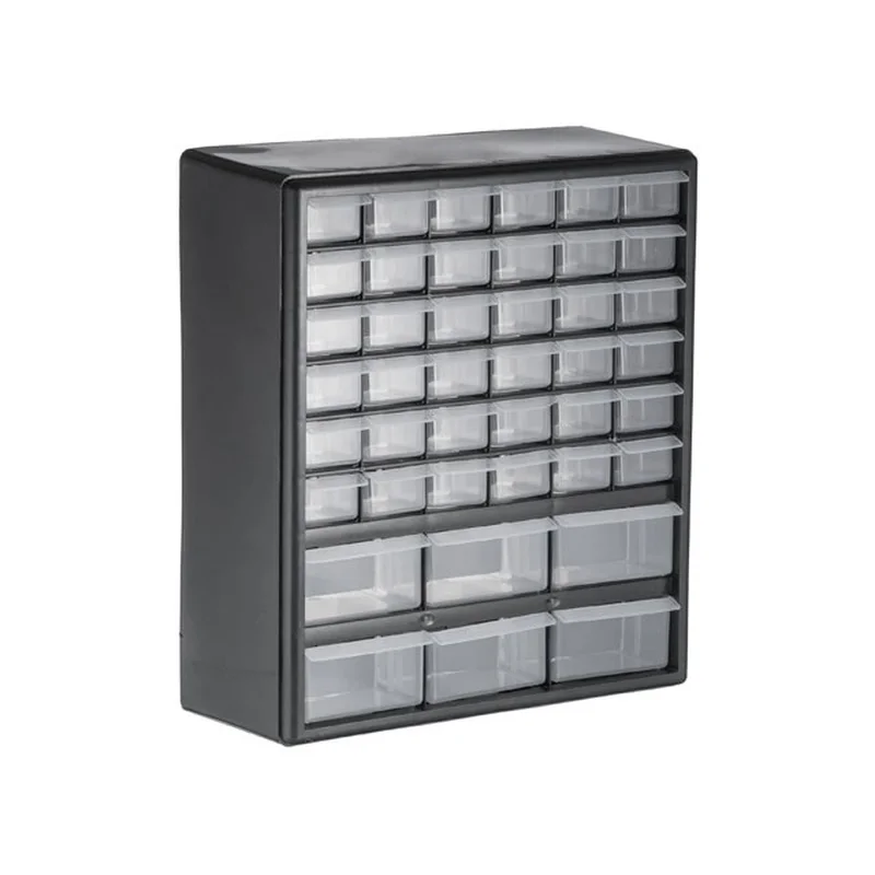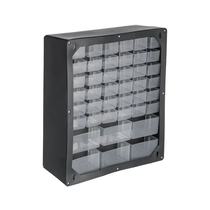 Вертикальний органайзер з безліччю різних відділень допоможе навести лад на робочому місці, вдома або в гаражі. Добре продумана містка конструкція спрощує зберігання та пошук невеликих речей, наприклад: кріпильних елементів, невеликої фурнітури, металовиробів, біжутерії, бісеру, а також негабаритних інструментів.