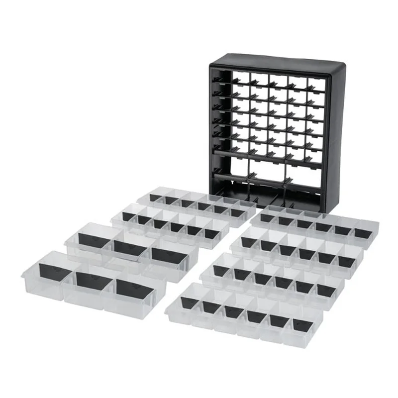 Прозорі стінки секцій дозволяють побачити що зберігається в лотках - це спрощує процес пошуку необхідного. Зручні ручки допомагають легко висувати лотки.
