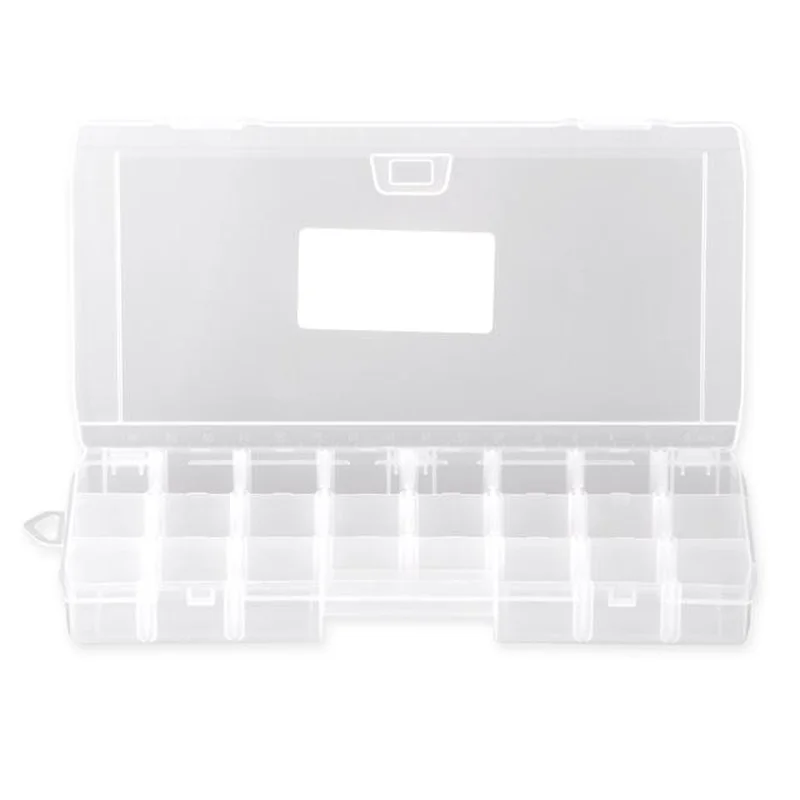 Органайзер просто відкривати та закривати, для цього передбачені два пластикові замки. Усередині нічого не перемішується та надійно зберігається у відсіках. Ви можете чітко бачити вміст завдяки прозорому кейсу та швидко знайти необхідну деталь.