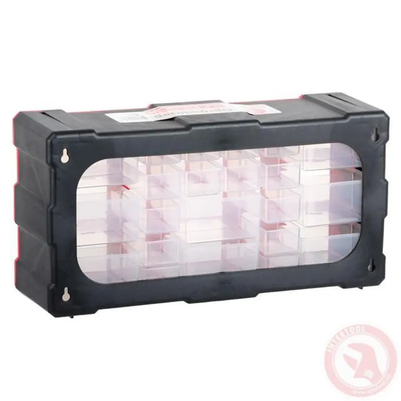 Місткий вертикальний органайзер з безліччю різних відділень допоможе навести лад на робочому місці, вдома або в гаражі. Особливості Компактний та місткий Міцний цілісний корпус Знімні перегородки всередині кожного відділення Можна кріпити на стіну Добре продумана конструкція спрощує зберігання та пошук невеликих речей, наприклад: дрібної фурнітури, метизів, біжутерії, бісеру тощо. Органайзер виготовлено з міцного пластику та містить в собі 22 відділення: 8 великих (140 х 110 х 60 мм), 14 маленьких (140 х 50 х 35 мм). Зручні ручки допомагають діставати лотки, а обмежувачі на верхніх стінках комірок не дозволяють їм випадати. Усередині кожного лотка розміщується знімна перегородка, що збільшує кількість камер зберігання до 44 шт. Прозорі стінки спрощують процес пошуку. Органайзер призначений для стаціонарного використання, місткий та не займає багато місця. Завдяки отворам, розташованим на задній стінці, легко кріпиться на стіну. З цим органайзером Ви точно наведете затишок та порядок. Ящики для інструментів, органайзери, системи зберігання №1 в Україні. За результатами незалежного рейтингового дослідження у рамках проекту Українська Народна Премія 2021 року.