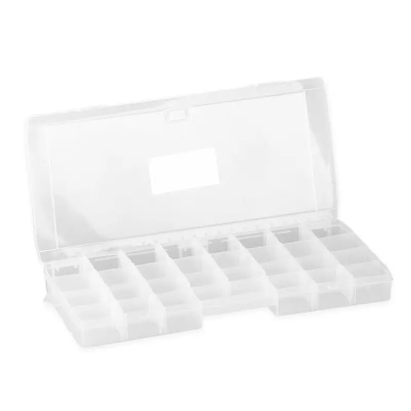 Органайзер просто відкривати та закривати, для цього передбачені два пластикові замки. Усередині нічого не перемішується та надійно зберігається у відсіках. Ви можете чітко бачити вміст завдяки прозорому кейсу та швидко знайти необхідну деталь.