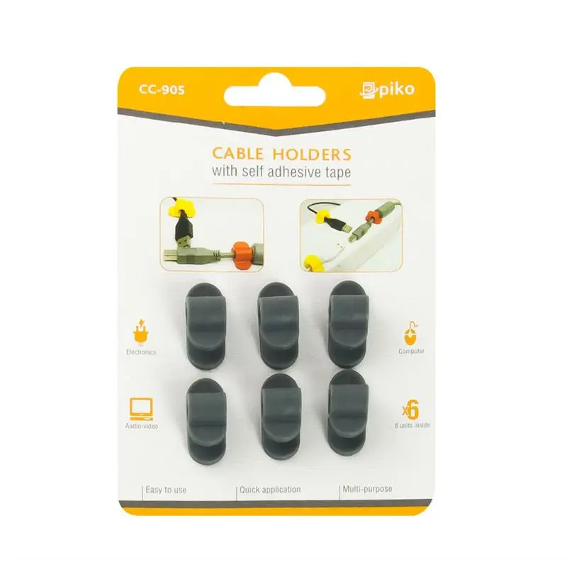 Piko CC-905 — простий і зручний органайзер-тримач для проводів на вашому столі або в автомобілі. Сумісний із великою кількістю поширених кабелів: USB, VGA, HDMI, кабелі для навушників, кабелі живлення й інші.