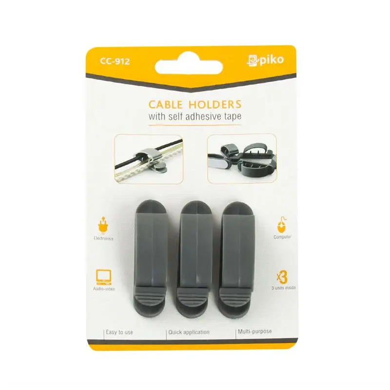 Piko CC-912 — трисекційний органайзер-тримач для проводів на вашому столі або в автомобілі. Сумісний із великою кількістю поширених кабелів: USB, VGA, HDMI, кабелі для навушників, кабелі живлення й інші.