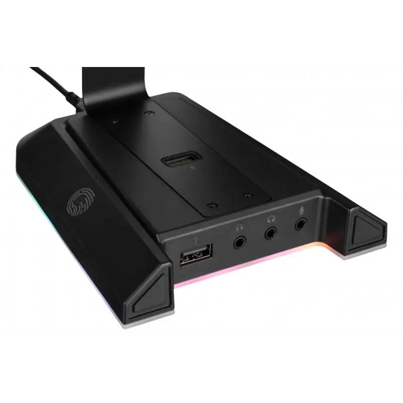 Стильна підставка для гарнітури 2E Gaming GST320 7.1 – це USB-хаб та зовнішня звукова карта 7.1 одночасно. Модель оснащено яскравим RGB-підсвічуванням (9 режимів) із сенсорним керуванням. Потужне фірмове ПЗ забезпечує витончене налаштування звуку. Підставка має 3,5 мм розніми для: навушників, мікрофона та навушників + мікрофон.