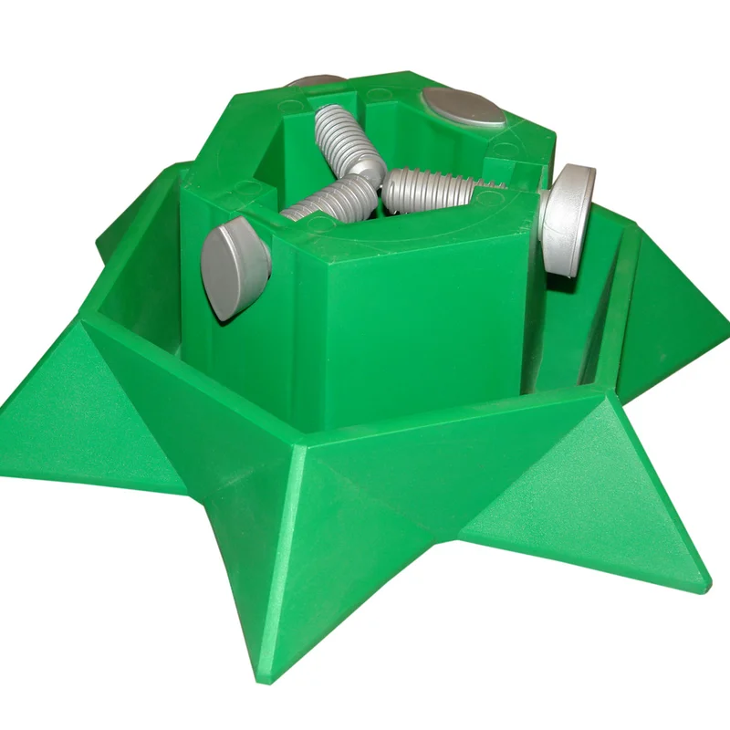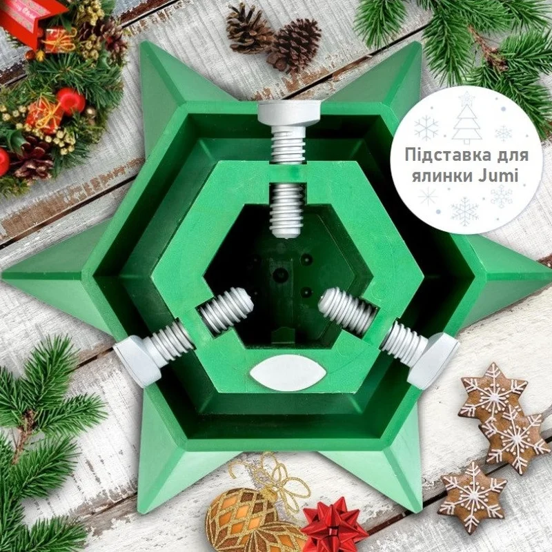 Підставка для ялинки від польського бренду Jumi зеленого кольору у формі зірки дозволяє стійко закріпити живе або штучне новорічне дерево у вертикальному положенні.