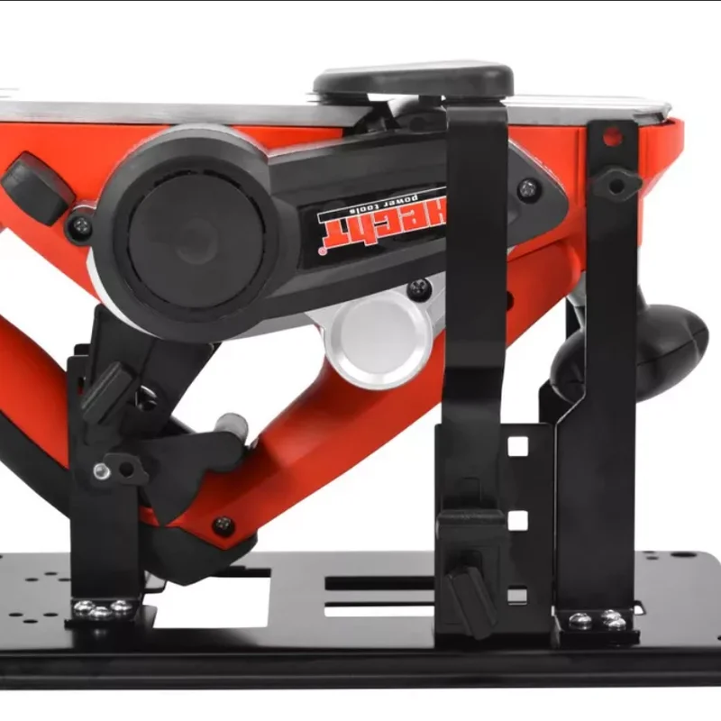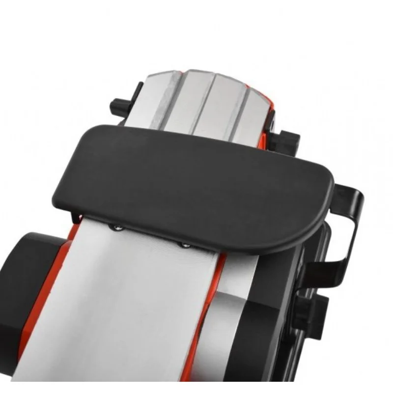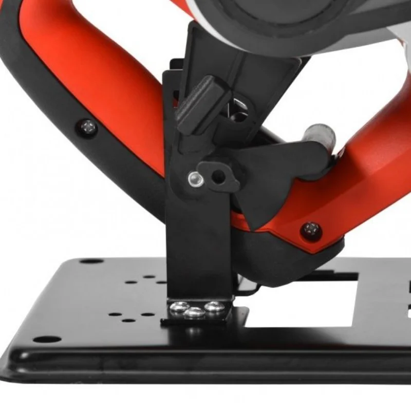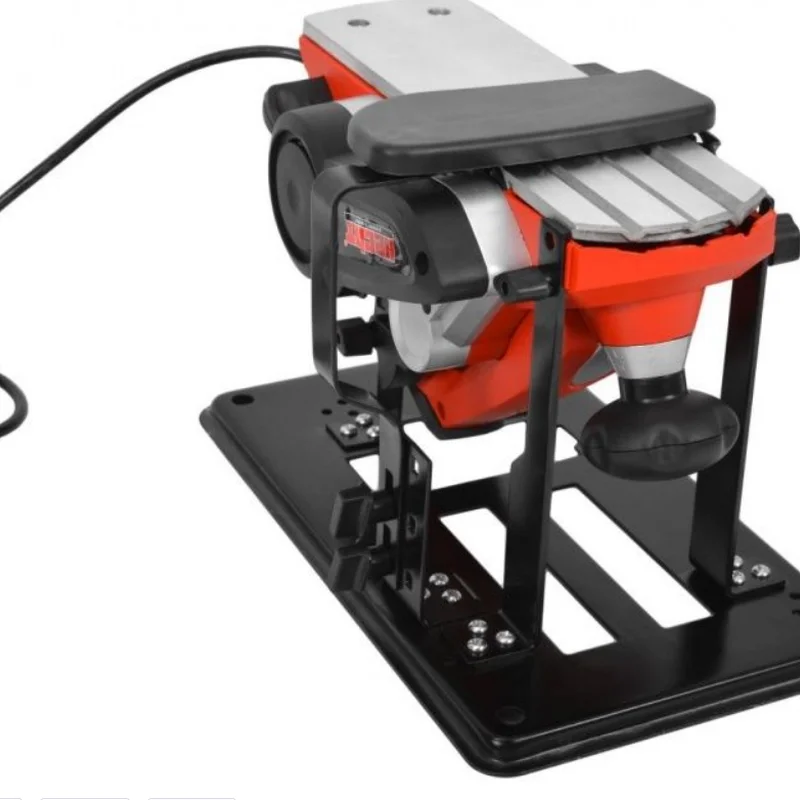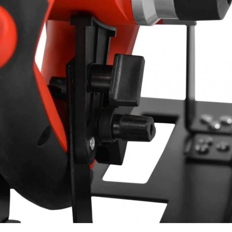 Робоча підставка для кріплення рубанка HECHT 1790. Стійка стійка і міцна після кріплення рубанка. Леза рубанка заховані під пружинною кришкою. Це мінімізує ризик отримання травм під час роботи. Рубанок не оснащений фіксатором спускового гачка, тому тримач оснащений механізмом, який утримує спусковий гачок в натиснутому стані, щоб обидві руки оператора були вільні для безпечної роботи. Після цього рубанок можна легко запускати та вимикати, натискаючи на спусковий механізм.