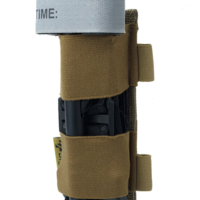 Підсумок виготовлений із пропіленової стропи і резинки, яка надійно тримає турнікет і забезпечує швидкий доступ до нього. Збоку до підсумка пришиті дві стрічки, за допомогою яких можна фіксувати маркер для нанесення інформації про час накладення турнікета.